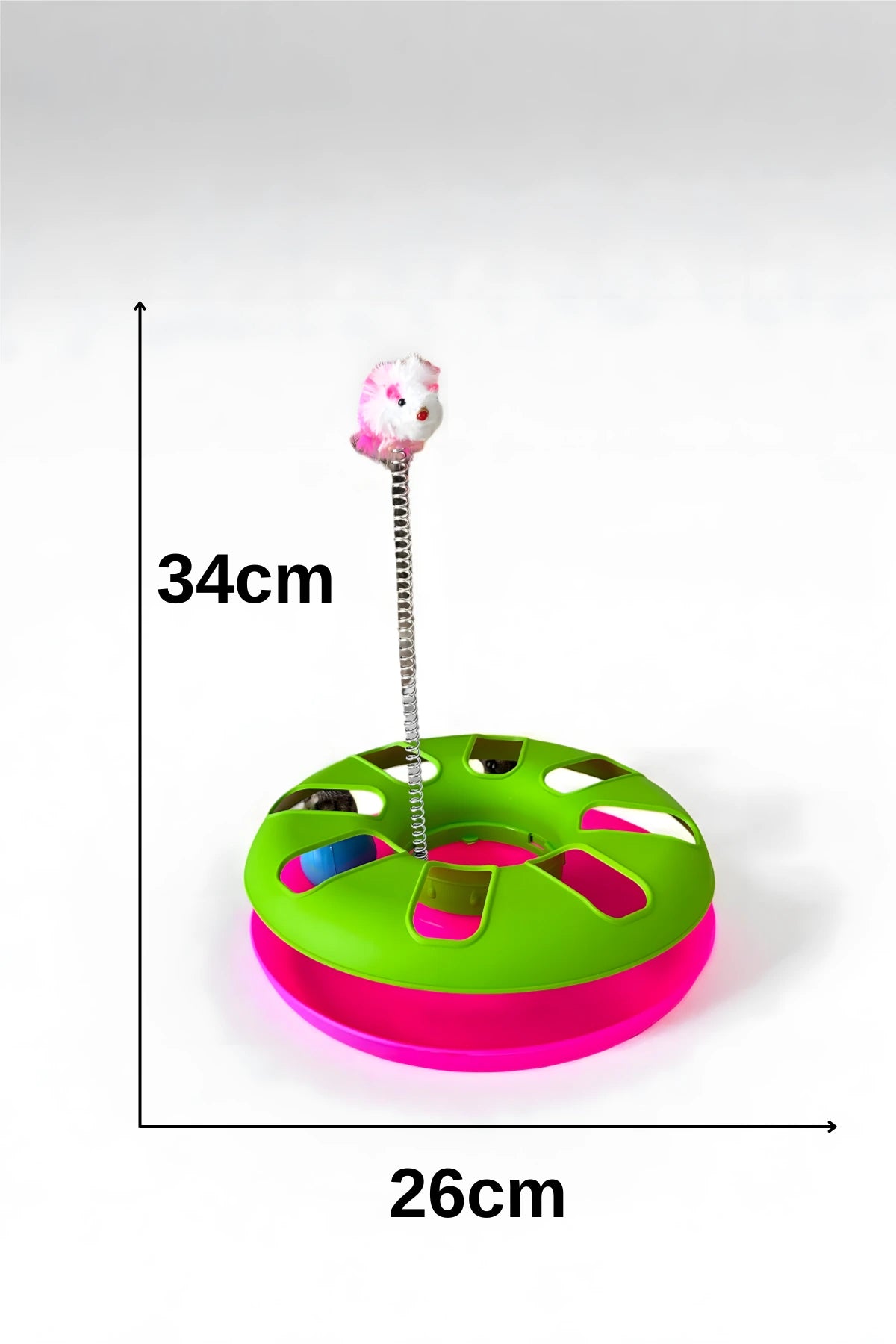 Kedi Oyun Çemberi – Enerji Atan Kedi Eğlence Aksesuarı, Yaylı Fare ve Çıngıraklı Top